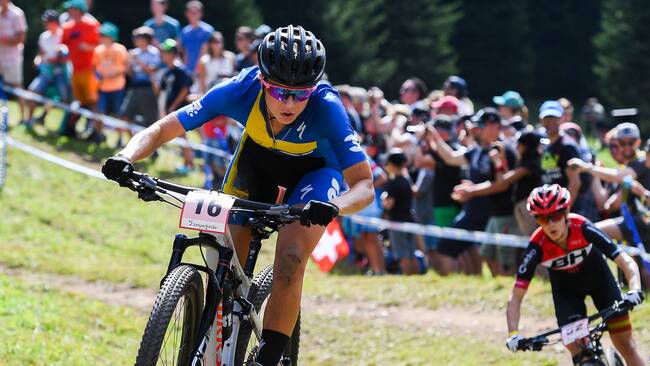 Hon avslutade helgen i frankrike med att ta en andraplats i världscupen i mountainbike.